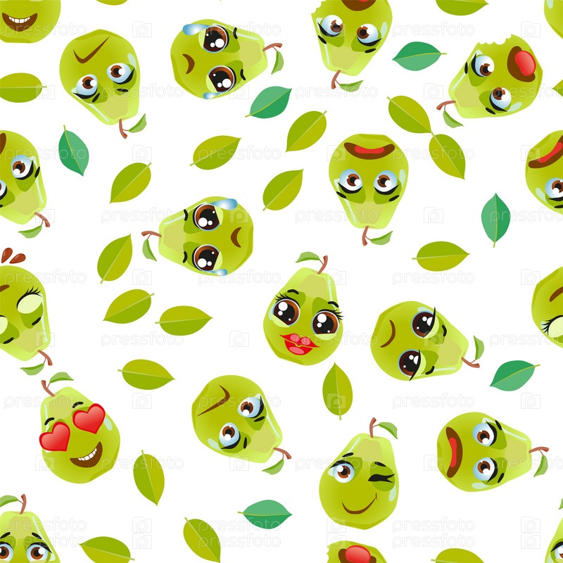 Бесшовный рисунок фруктовой груши. Смешные милые лица персонажей