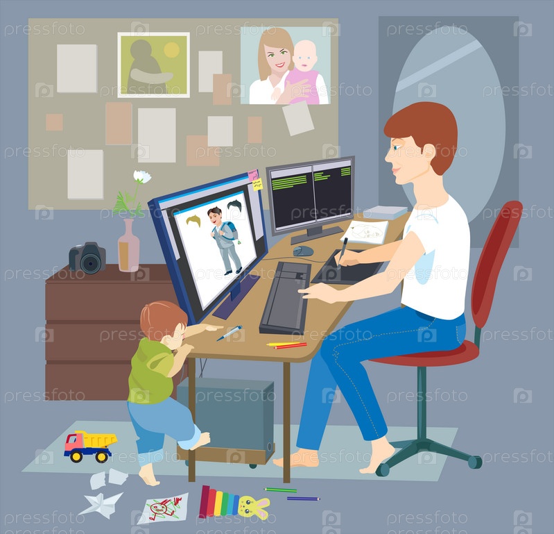 Отец работает в декретном отпуске дома и ее ребенок