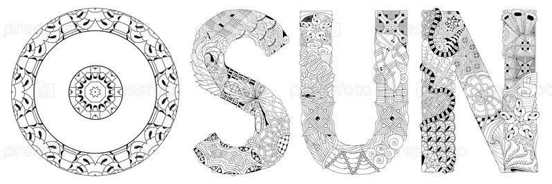 Векторная ручная иллюстрация знака Солнца со словом SUN. Знаки гороскопа, магические символы, иконы. Концепция астрологии для оккультного дизайна