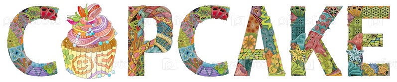 Художественный дизайн ручной росписи.Ручно нарисованное слово CUPCAKE с изображением торта для футболок и других украшений
