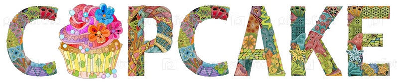 Слово CUPCAKE с изображением торта. векторный объект zentangle для украшения