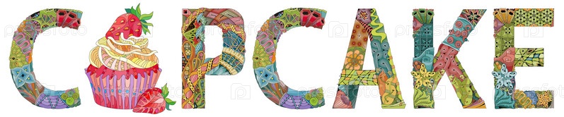 Слово CUPCAKE с изображением торта. векторный объект zentangle для украшения