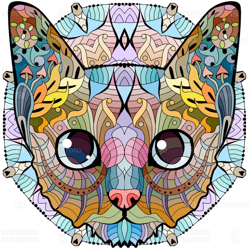 Голова кошки на мандале в стиле zentangle, стилизованная под антистресс, дизайн футболок, татуировки и других украшений