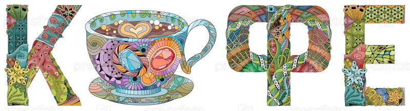 Художественный дизайн ручной росписи.Ручное изображение слова COFFEE на русском языке с силуэтом чашки для футболок и других украшений