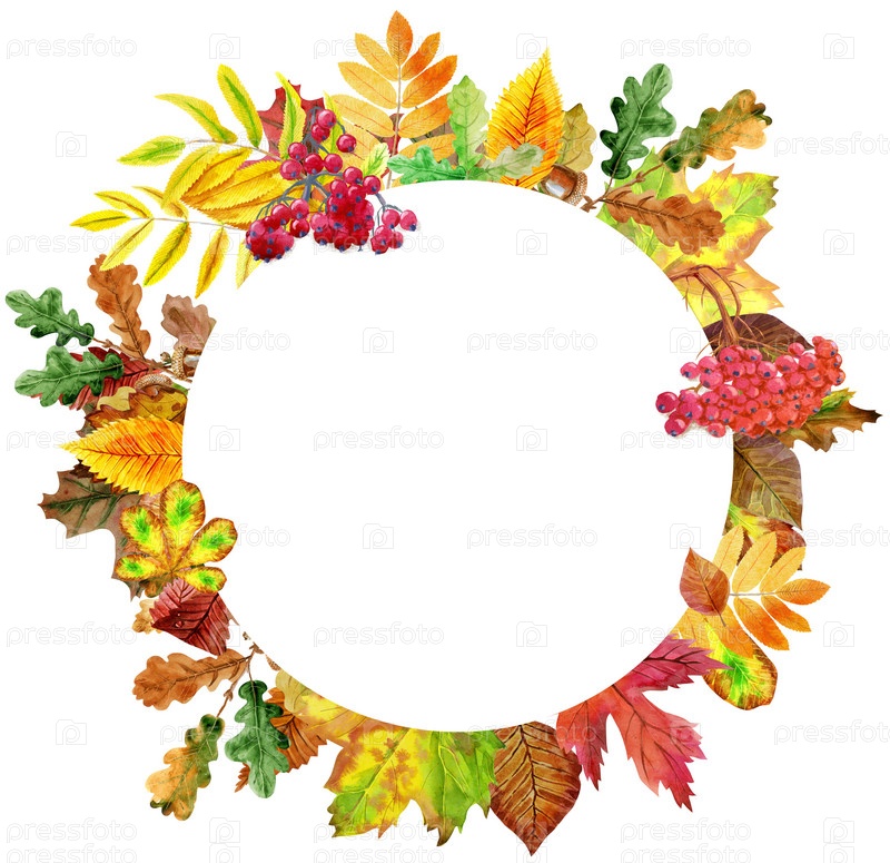 Белый круглый баннер с красными, оранжевыми, коричневыми и желтыми падающими осенними листьями