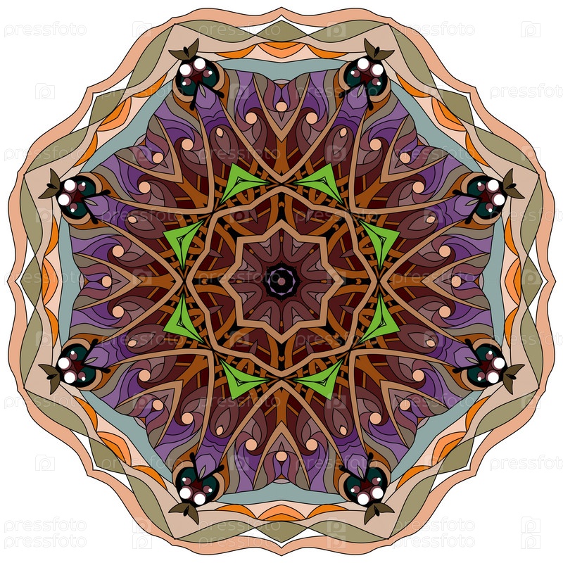 Декоративные круглые украшения. Необычная форма цветка. Восточный вектор, схемы антистрессовой терапии. Переплетение элементов дизайна. Вектор логотипов йоги