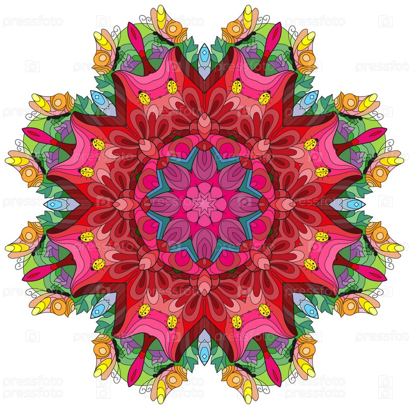 Декоративные круглые украшения. Необычная форма цветка. Восточный вектор, схемы антистрессовой терапии. Переплетение элементов дизайна. Вектор логотипов йоги