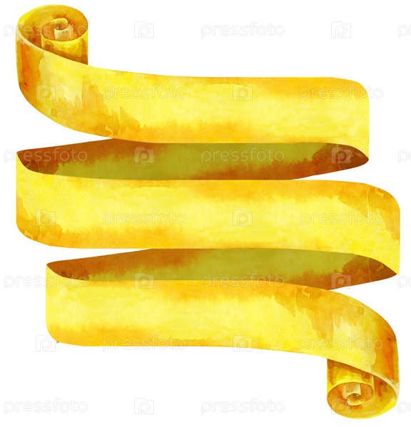 Акварель желтый баннер. Ручная роспись баннеров на белом фоне