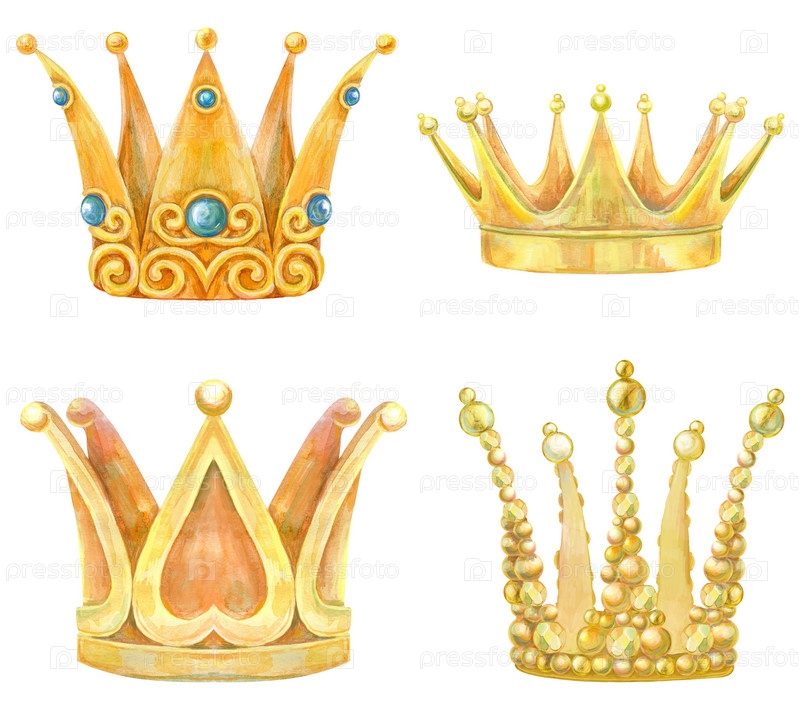 Набор акварельных золотых корон с переплетающимися декоративными элементами