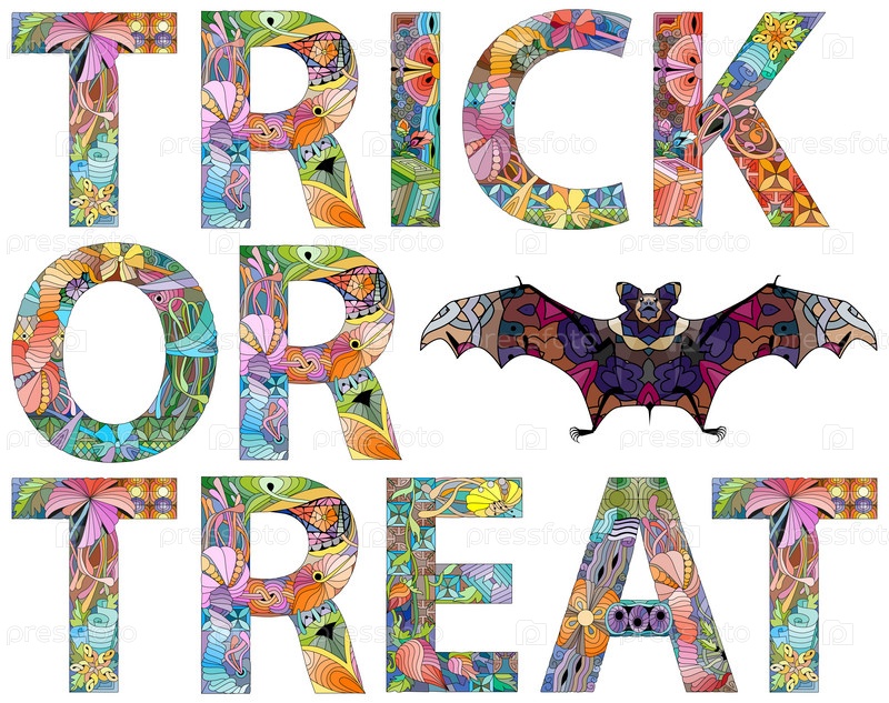 Ручной рисунок Хэллоуина трюк или угощение векторным фоном. Плакат ужасов Хэллоуина с ручной надписью и элементами декора