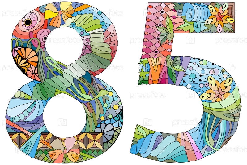 Восемьдесят пять цифр Изолированная иллюстрация зентегла для украшения