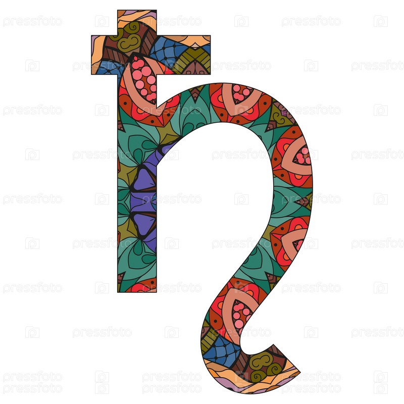 Векторная ручная иллюстрация знака Сатурна. Знаки гороскопа, магические символы, иконы. Концепция астрологии для оккультного дизайна