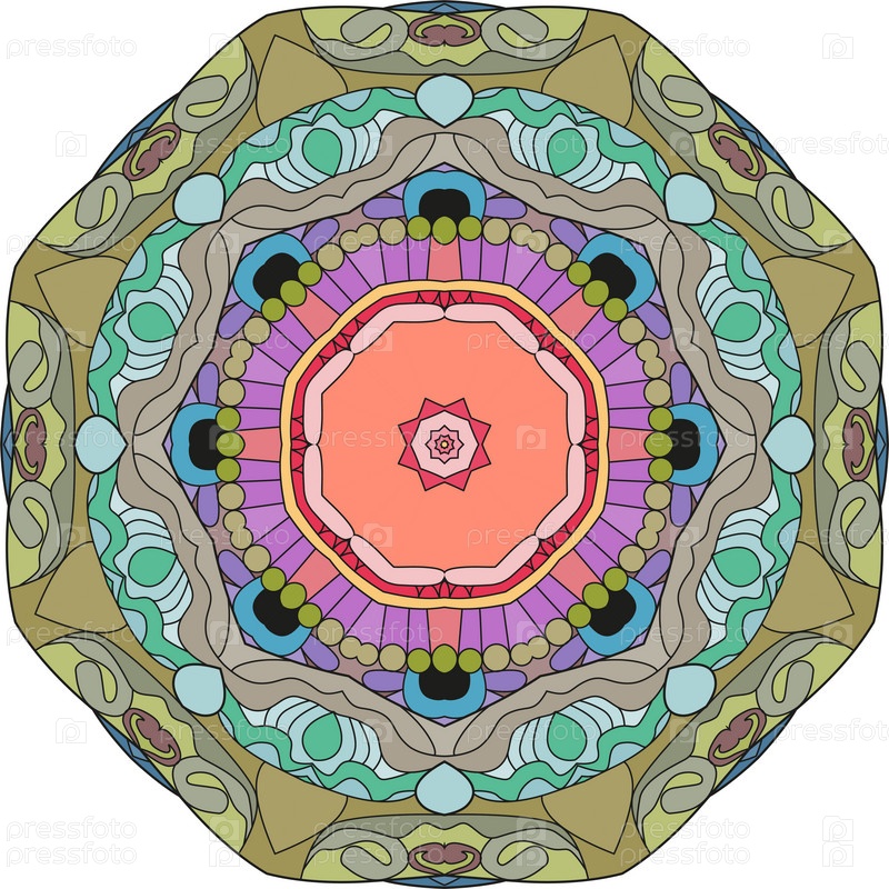 Декоративные круглые украшения. Необычная форма цветка. Восточный вектор, схемы антистрессовой терапии. Переплетение элементов дизайна. Вектор логотипов йоги