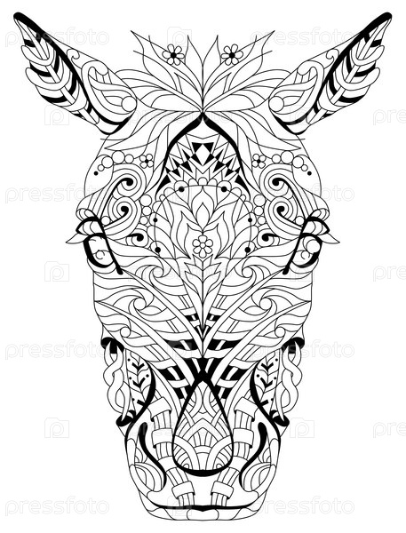 Голова лошади в стиле зентангл, стилизованная под дизайн футболки, раскраску, татуировку и другие украшения