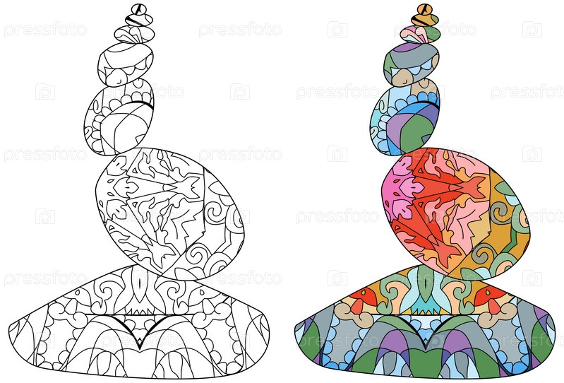 Концепция баланса. Дзен камни плоский стиль дизайна для раскраски страниц. Набор цветов и контуров