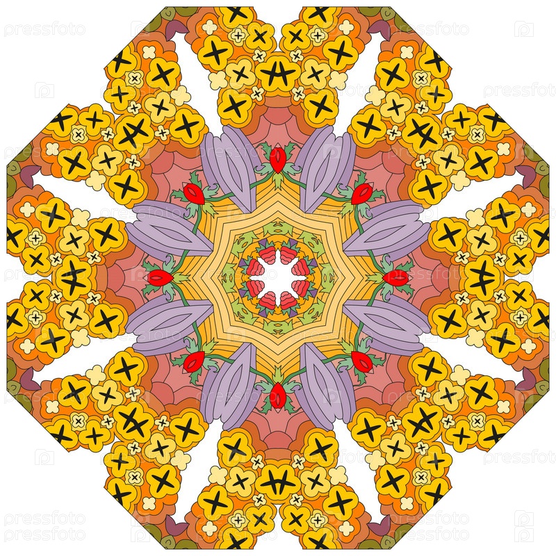Декоративные круглые украшения. Необычная форма цветка. Восточный вектор, схемы антистрессовой терапии. Переплетение элементов дизайна. Вектор логотипов йоги