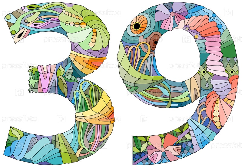 Тридцать девять цифр Изолированная иллюстрация зэнтегла для украшения