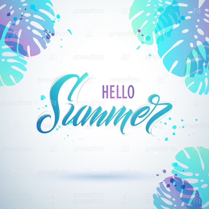 Привет лету рукописные надписи. Дизайн вектора типографии Hello Summer для поздравительных открыток и плакатов. Празднование шаблона дизайна. Векторная иллюстрация