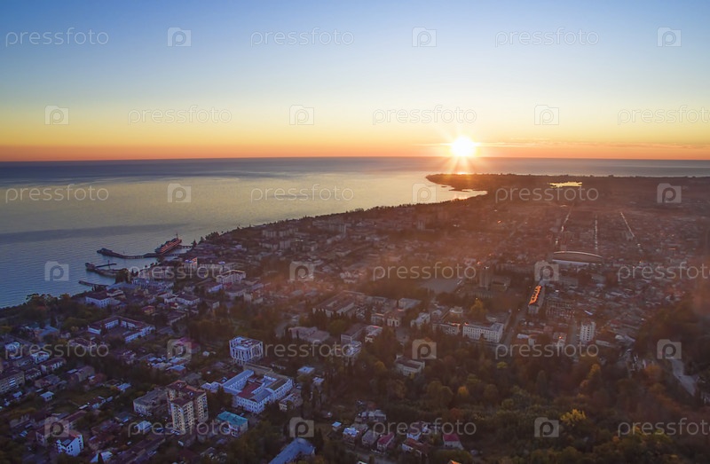 Сухуми, Абхазия. Вид сверху на вечерний город у моря