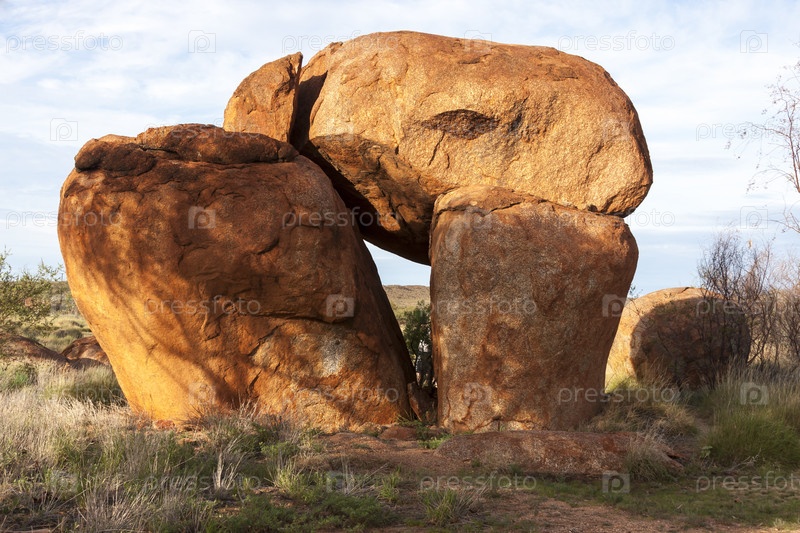 Мрамор Дьявола — огромные гранитные валуны, разбросанные по широкой неглубокой долине в 100 км к югу от Теннант-Крик на Северной территории, Австралия