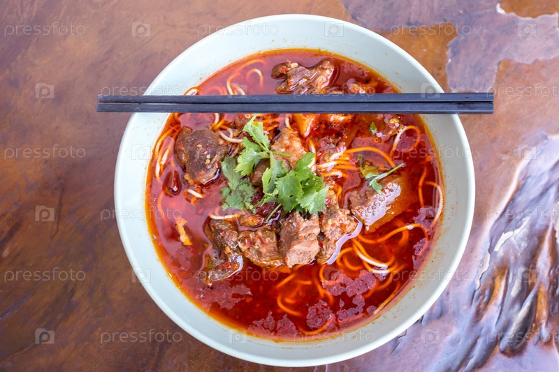 Лапша кунг-фу, как острая лапша с говядиной, овощами и китайским соусом, традиционная китайская кухня