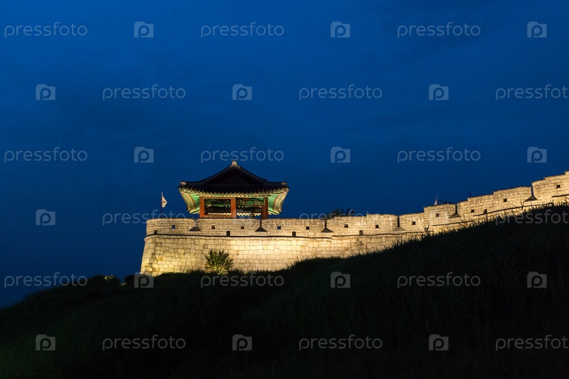 Крепость Сувон Хвасон (Сочжандэ) ночью, Южная Корея