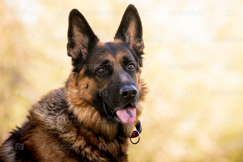 Портрет немецкой овчарки в парке. Чистокровная собака