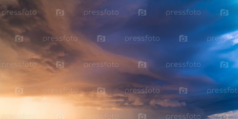 Вечернее небо в лучах заходящего солнца перед грозой. баннер