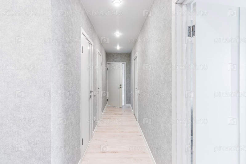 Коридор с белыми стенами и дверями в квартире
