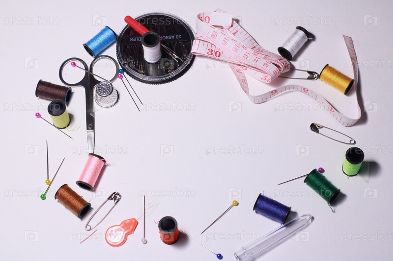 Швейные принадлежности (кольцом) на светлом фоне