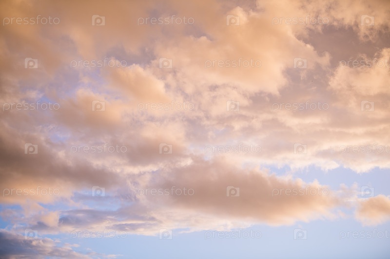 Вечернее небо в лучах заходящего солнца перед грозой