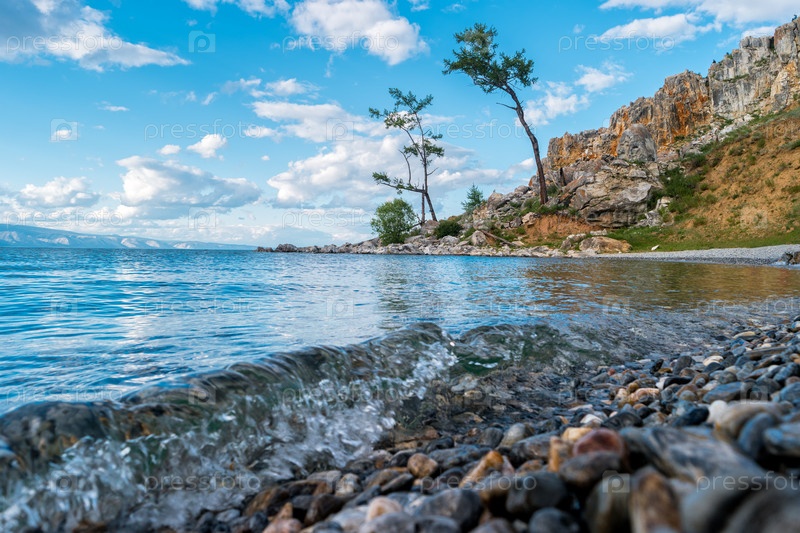 Красивый пейзаж скал мыса Бурхан на острове Ольхон и озера Байкал