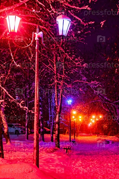 Фонарь ночь снег дерево