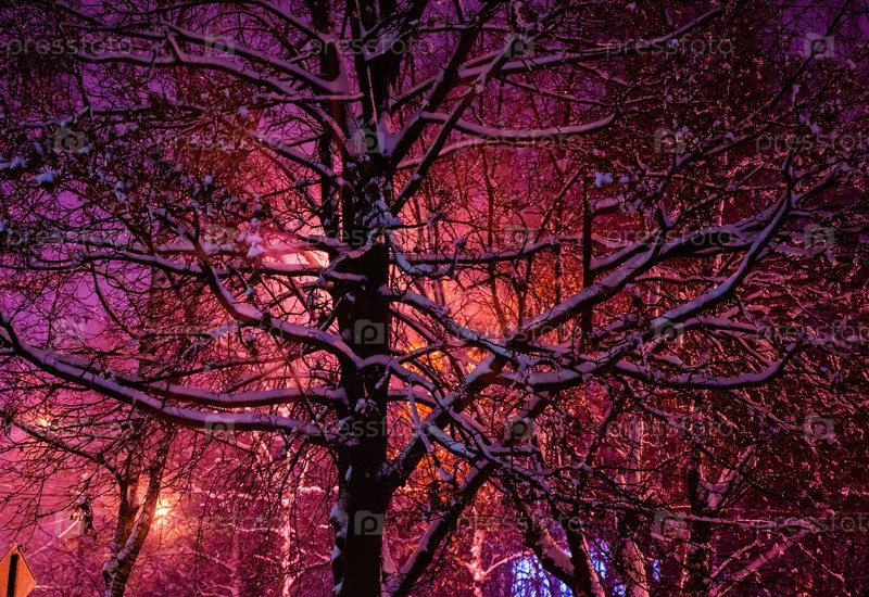 Фонарь ночь снег дерево