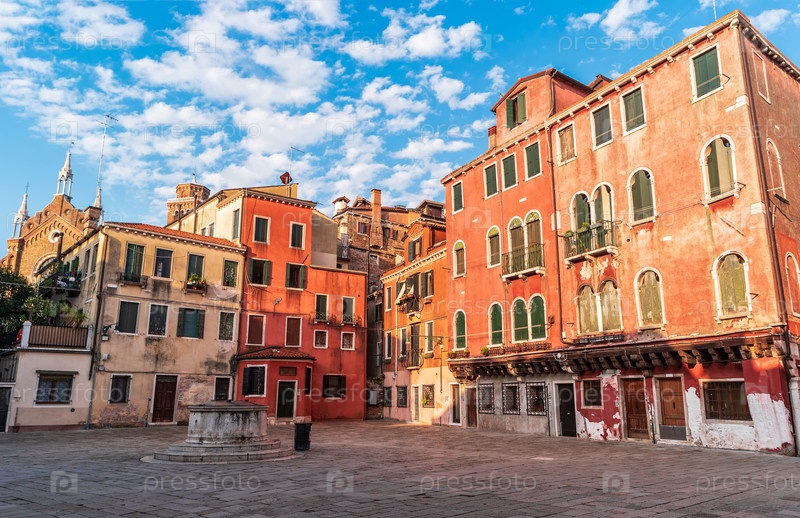 Небольшая венецианская площадь Кампо-Сан-Стин. Жилой район Венеции, Италия
