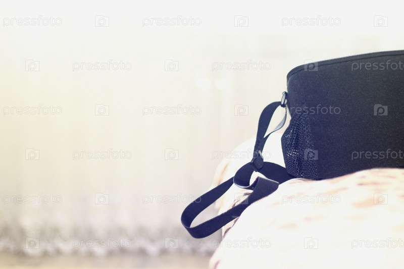 Сумка на кровати, светлый фон