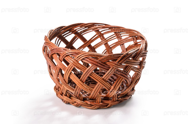 Декоративная плетеная корзина на белом фоне с мягкой тенью