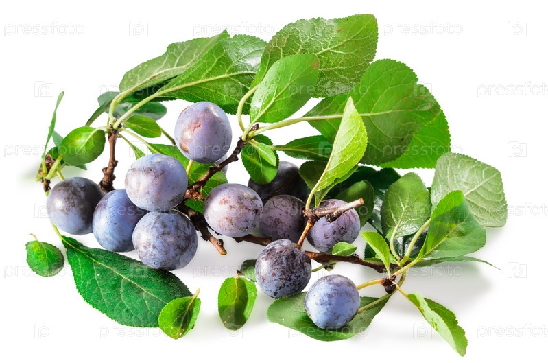 Спелые плоды терновника с листьями на белом фоне с мягкой тенью