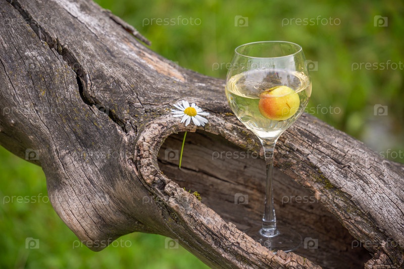 Бокал вина в старой сухой яблони