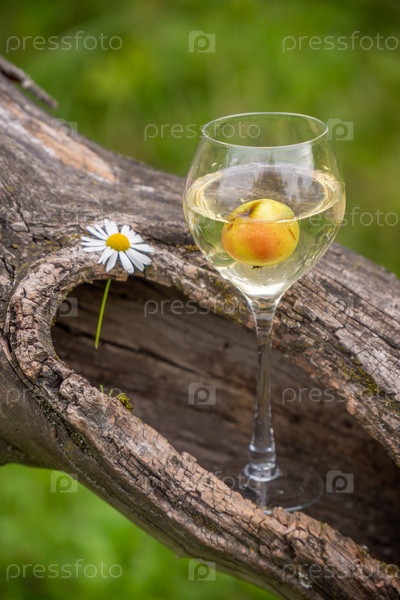 Бокал вина в старой сухой яблони