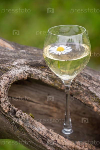 Бокал вина в старой сухой яблони