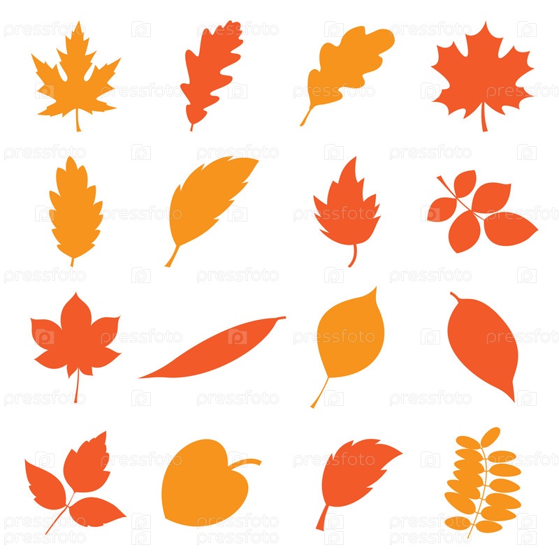 Коллекция простых, нарисованных вектором осенних листьев, выделенных на белом фоне. Векторная иллюстрация