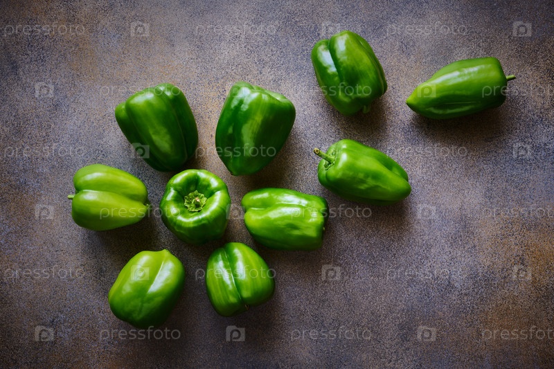 Паприка, спелый сладкий зеленый перец, разбросанный по столу, плоская кладка с копией пространства