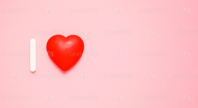 Красное сердце на розовом фоне. Скопируйте пространство. Концепция влюбленности и праздник 14 февраля