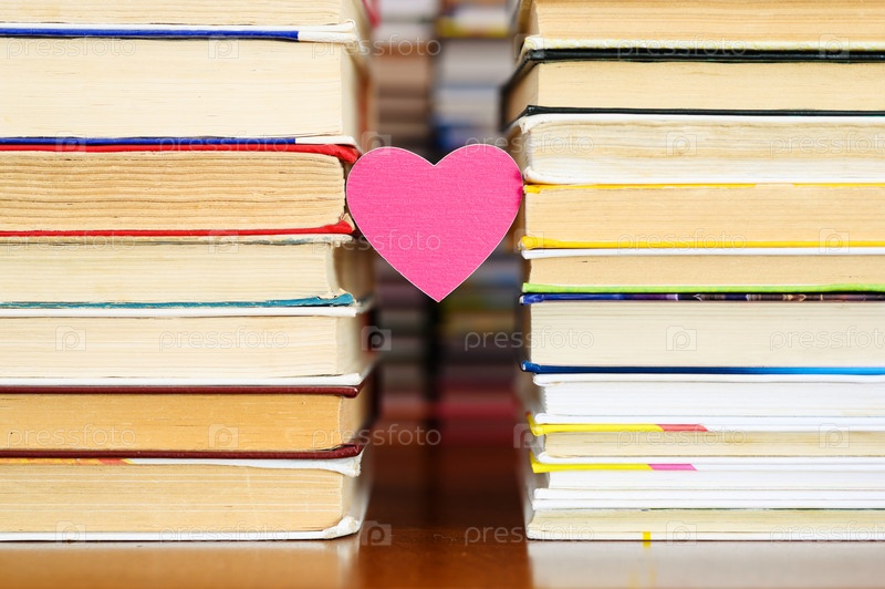 Маленькое сердце висит между двумя стопками старых книг
