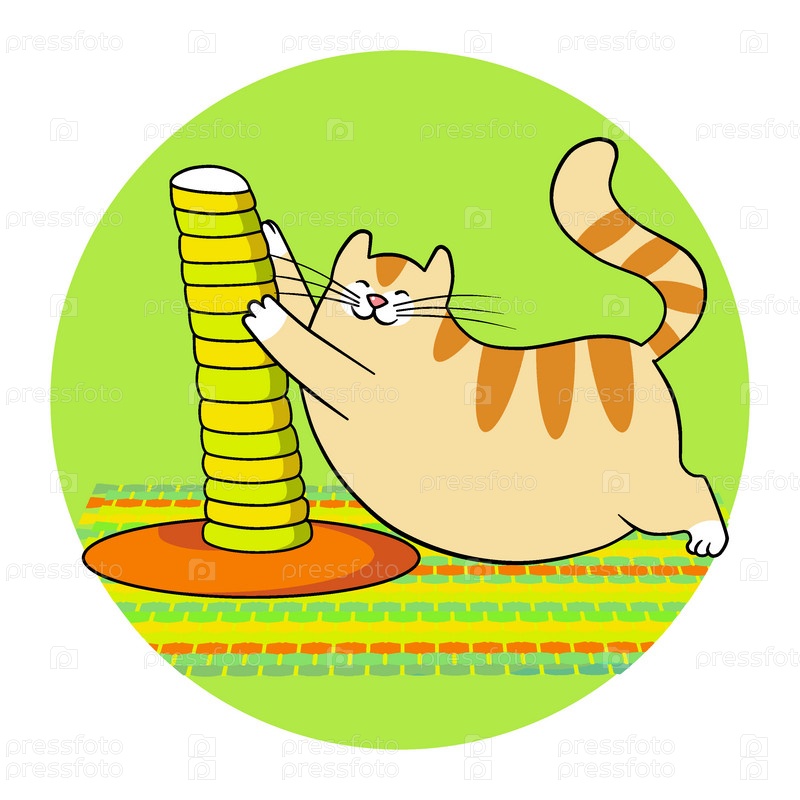 Счастливый кот точит когти. Шутливая иллюстрация для оформления открытки, подарка, наклейки, блокнота, тетради и т.д
