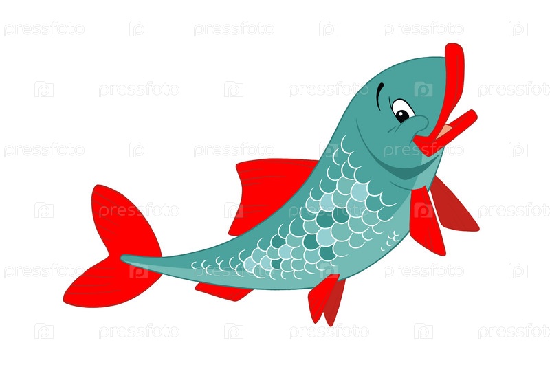 Изображение красочной улыбающейся рыбы. Иллюстрация для детей или оформление упаковки подарка, значка, открытки т.д