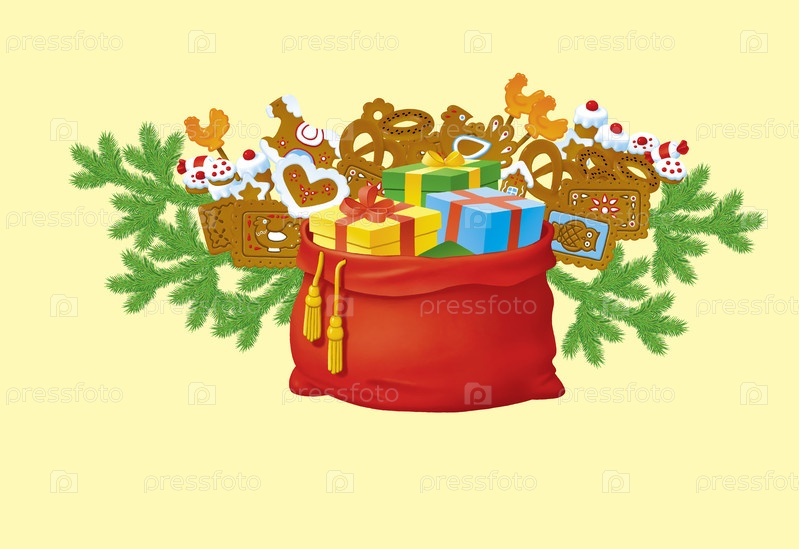 Мешок деда Мороза с новогодними подарками и угощениями