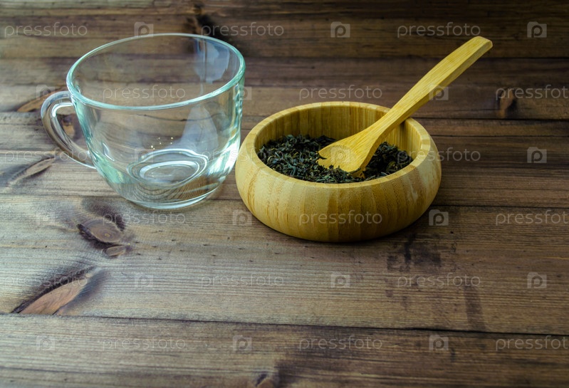 Стеклянная кружка с сушеным зеленым чаем