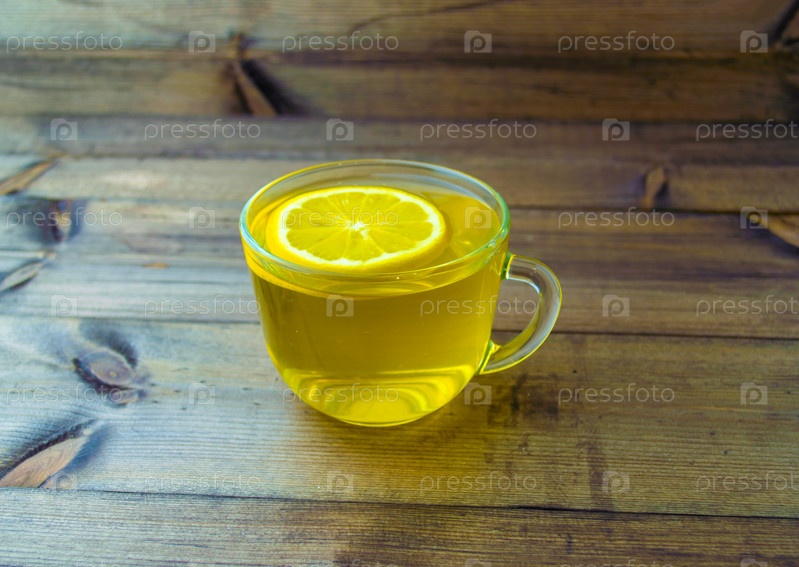 Зеленый чай с лимоном в стеклянной кружке